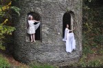 Lindsay and I then moved around the lake to the top of the rocky outcrop (see recce shoot) back towards the tower. We got the models to sit and stand, individually and together in the window spaces. Again, no flash, just the sunlight, when it came out. Really like these shots and the reflections. Lindsay also went down to a lower level to get a different angle.