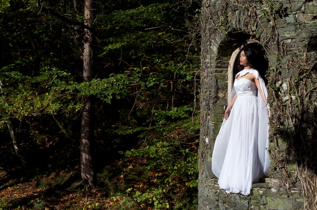 We started with shots in and around one of the ‘turrets’ always conscious to keep moving and swapping models to keep them warm. Our first shots were the models standing in the windows, us shooting from inside the turret, getting the water and woodland in the background. Although i’ve not got any of these shots, because I shoot Nikon and the off camera flashes that we had are Canon. I did however take a few shots using Malcolm’s camera.