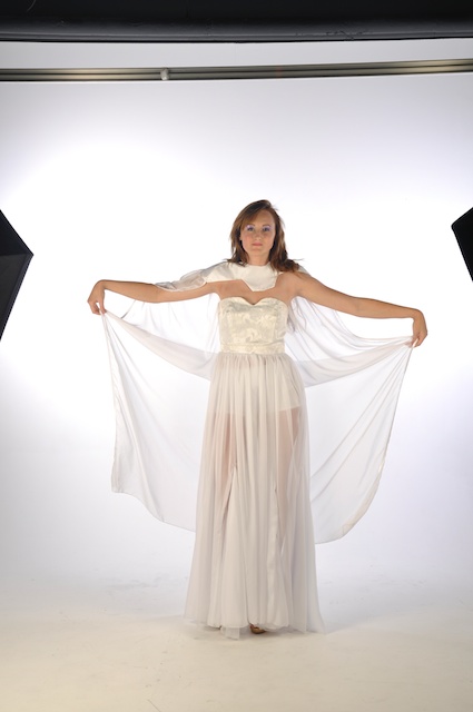 White Dress Project Studio Shoot 6th November 2013 Original size at 425 × 640 Leave a comment Cape not sitting straight. Like the idea, but arms don’t quite look right.